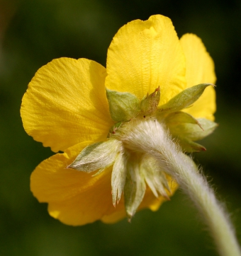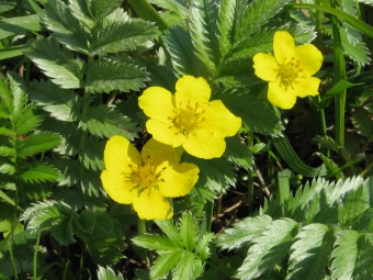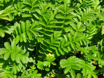 Víceletá, nízká, plazivá bylina s až 80 cm dlouhými, na uzlinách kořenujícími výběžky. Listy primární růžice řapíkaté, přetrhovaně lichozpeřené, až 20 i více cm dlouhé, na rubu stříbřitě hedvábně chlupaté, se 4 až 12 jařmy velkých lístků, mezi kterými leží malé celokrajné nebo zubaté lístky. Květy, jednotlivé, úžlabní, 5četné, žluté. Kvete v V až VIII.