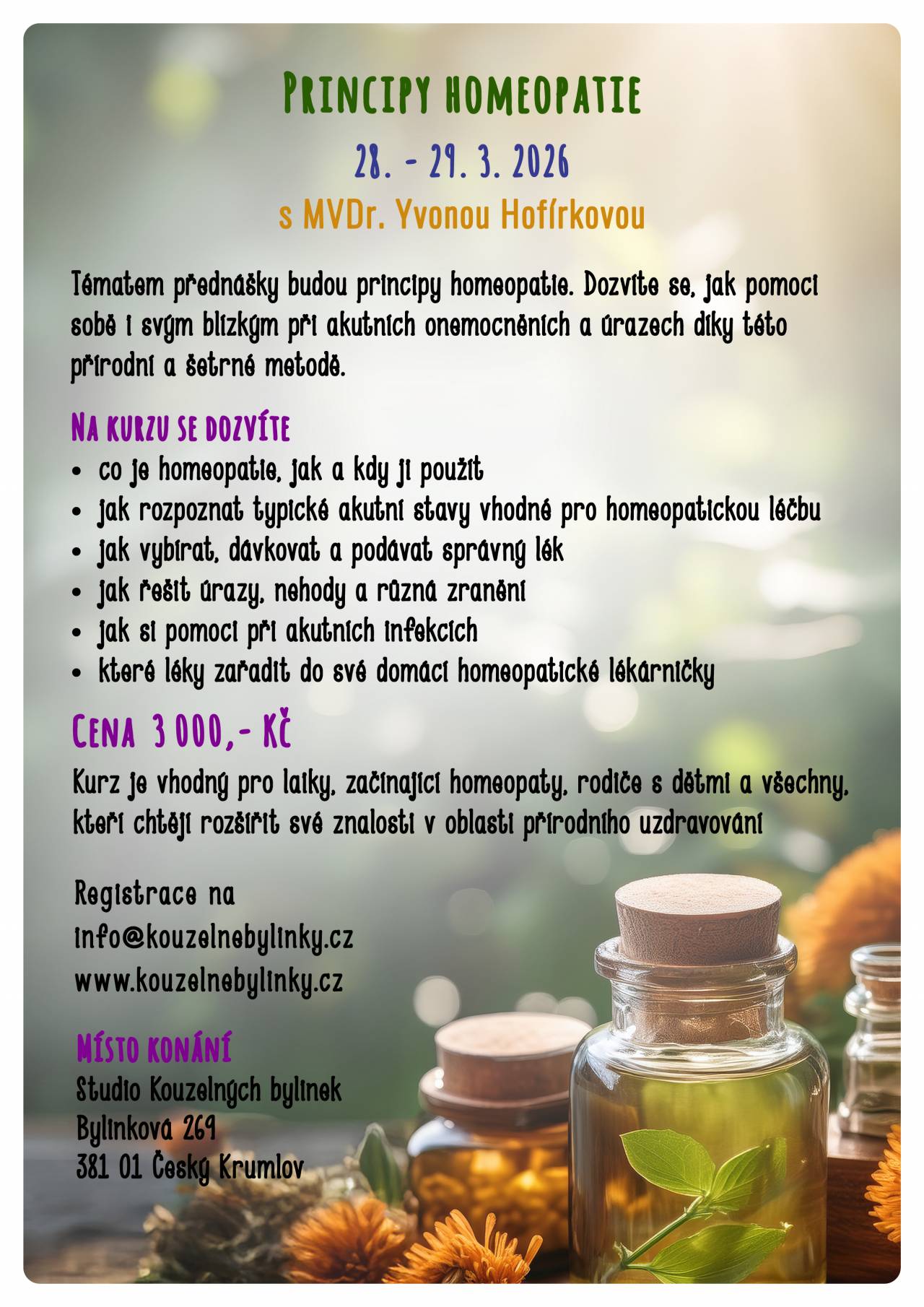 Zveme Vás na kurz principy homeopatie s MVDr. Yvonou Hofírkovou.