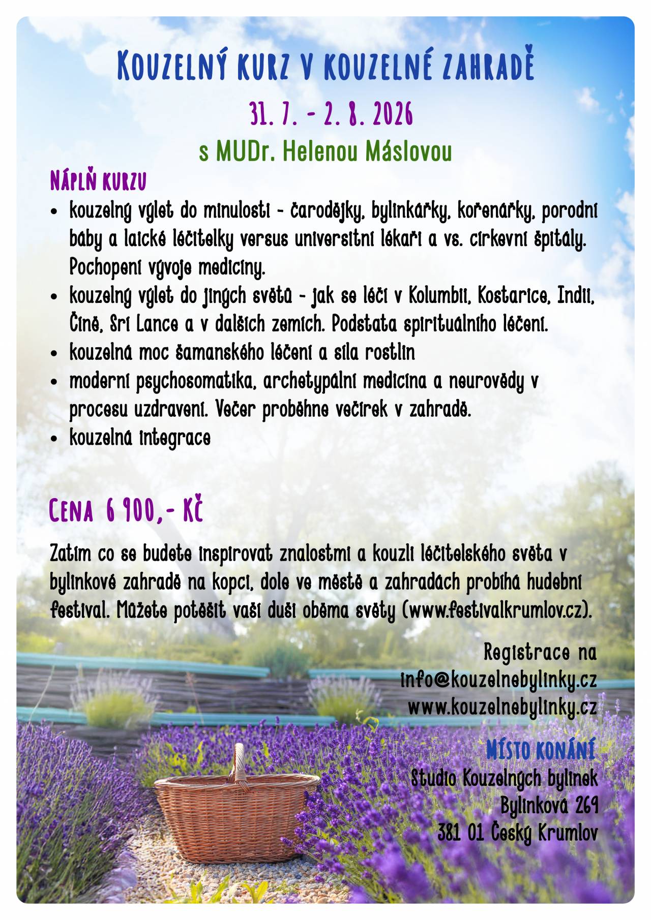 Zveme Vás na Kouzelný kurz v kouzelné zahradě s MUDr. Helenou Máslovou.