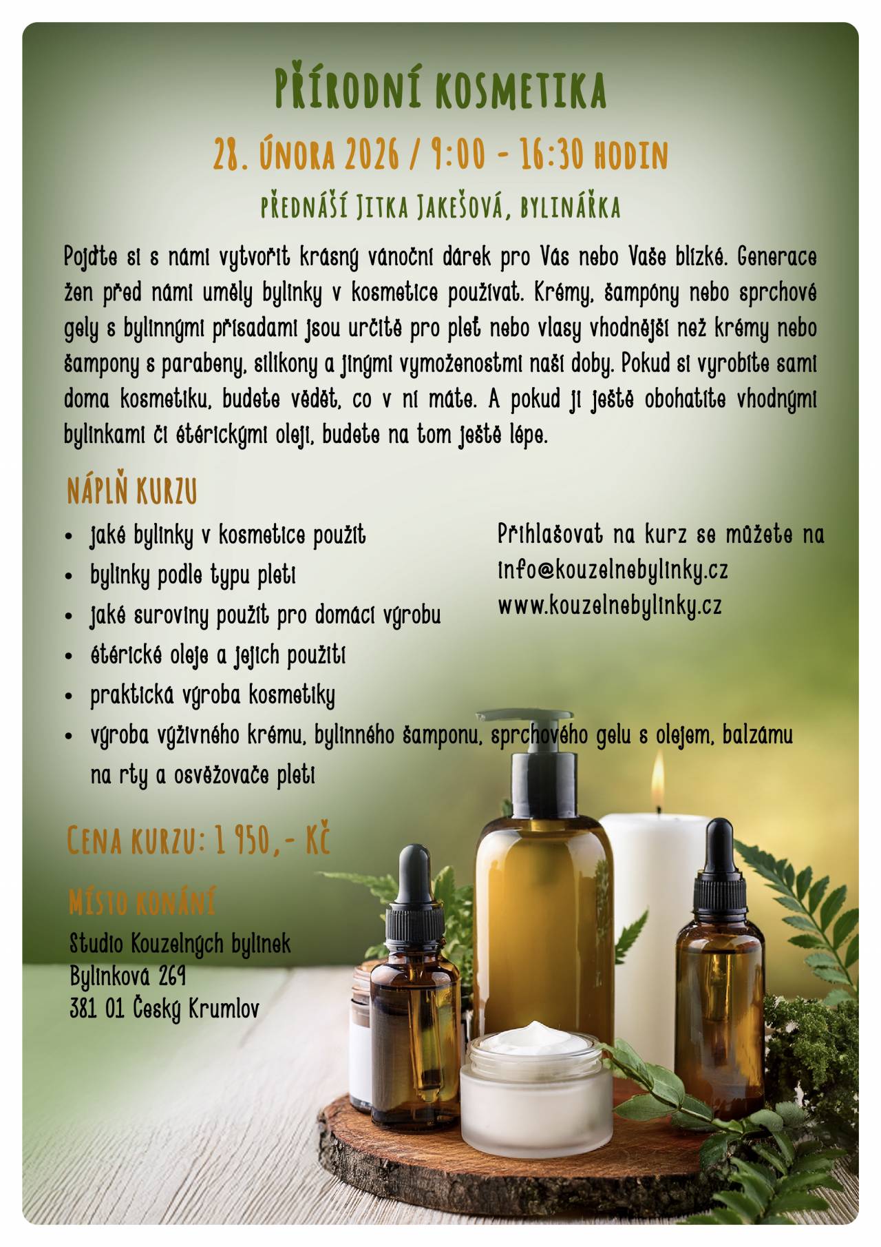 Zveme Vás na kurz přírodní kosmetiky s Jitkou Jakešovou.