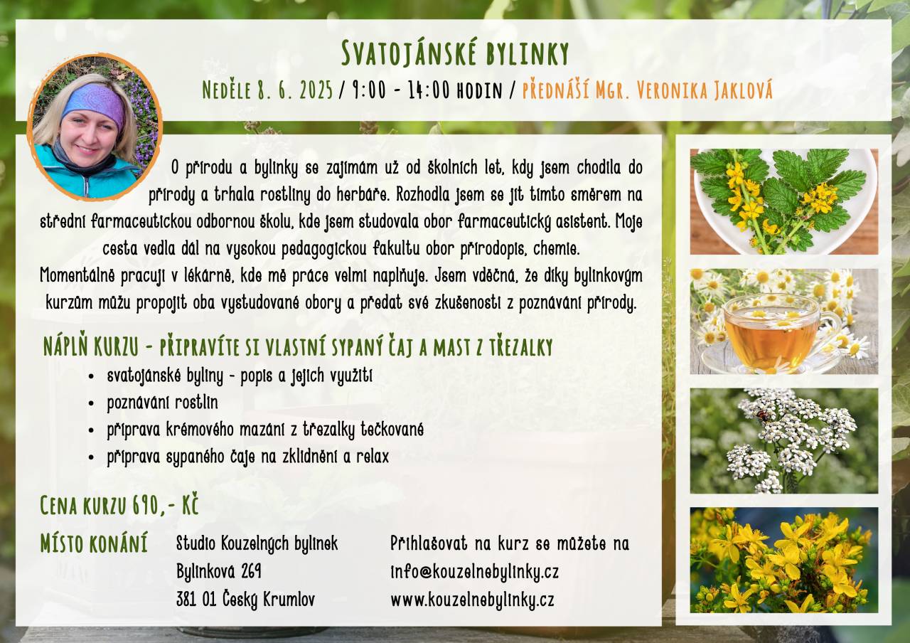 Zveme Vás na kurz s Mgr. Veronikou Jaklovou o Svatojánských bylinkách.